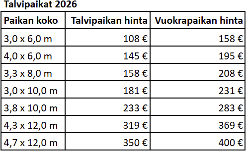 - Satamanhoitomaksu 0 € / vene (2026 erikoishinta)